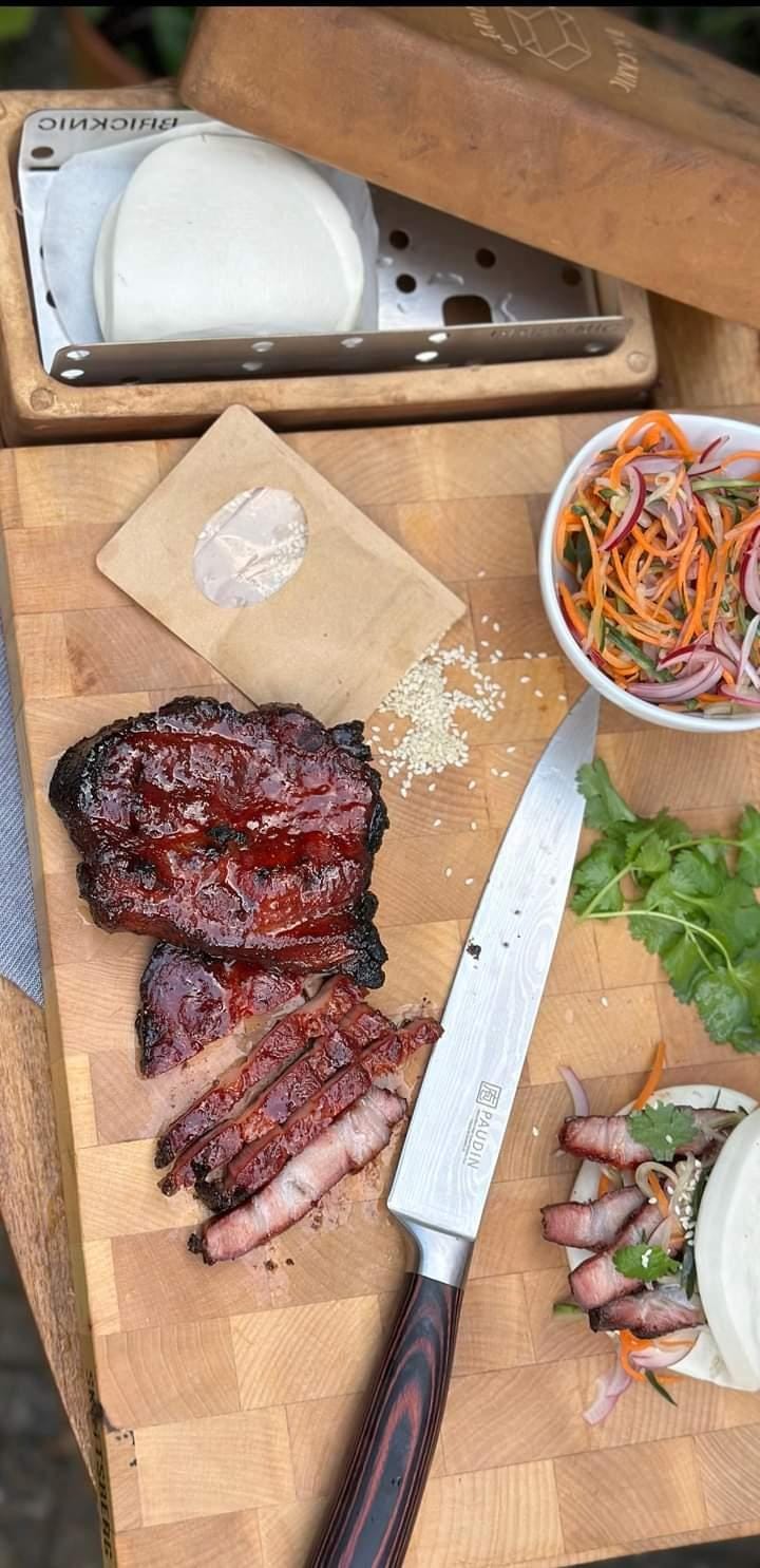 Now comes the fun part! Take a soft, steamed bao bun and load it up with slices of your juicy Char Siu. Add a handful of fresh coriander for a burst of freshness and a sprinkle of chili shavings for that kick.